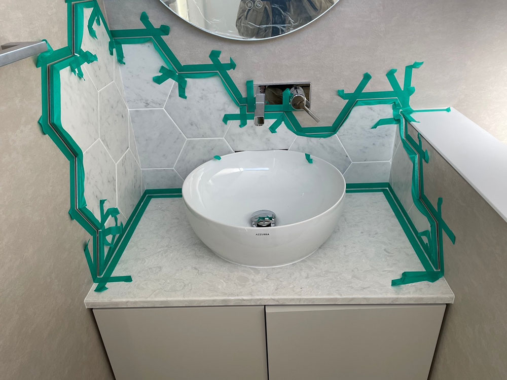 また、お風呂場やキッチン、洗面化粧台など、部屋内水回りのシーリング等も対応しております。経年劣化による、シーリングのカビや汚れは落としづらい為、打ち替えをご提案させていただいております。